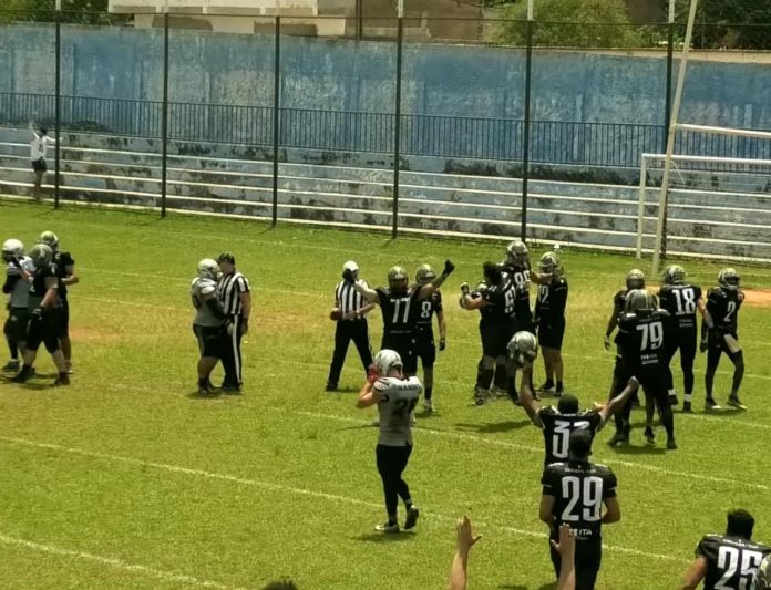 No Plínio José de Sousa, em Senador Canedo, os paulistas largaram em vantagem, e fizeram o 1º touchdown no começo do 2º quarto. Porém, no decorrer do jogo, os goianos aproveitaram as descidas ofensivas, e sustentaram a vantagem adquirida até o cronômetro estourar. As parciais do confronto foram 0x0 (1º set), 6×10 (2º set), 20×10 (3º set) e 27×17 (4º set). O destaque em campo foi Jailen, running back (RB) dos mandantes, que registrou três touchdowns.