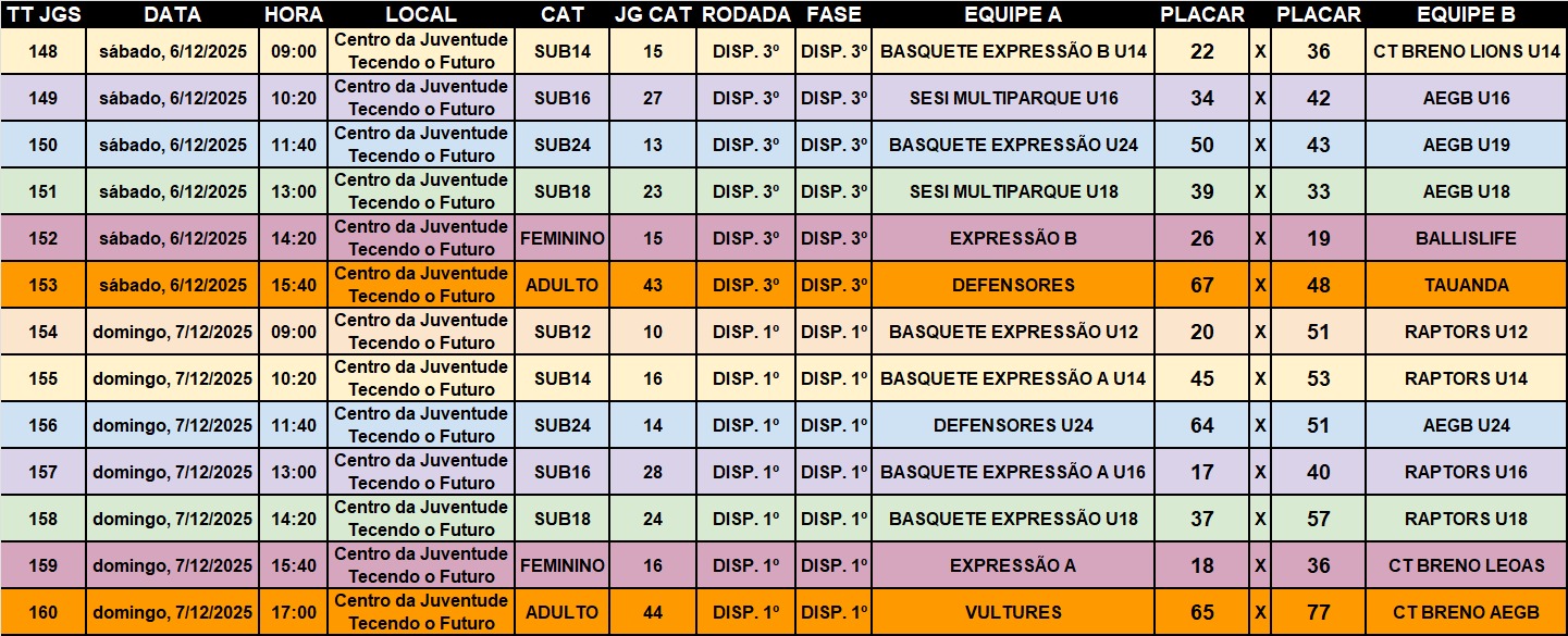 Antes, no sábado (06), todas as categorias citadas decidiram os medalhistas de bronze. Já com relação às finais adultas, no masculino, o CT Breno AEGB venceu o Vultures por 77×65. Por outro lado, no feminino, o CT Breno Leoas superou o Expressão A, pelo placar de 36×18. Todas as partidas decisivas aconteceram na OVG – Centro da Juventude Tecendo o Futuro, em Goiânia.