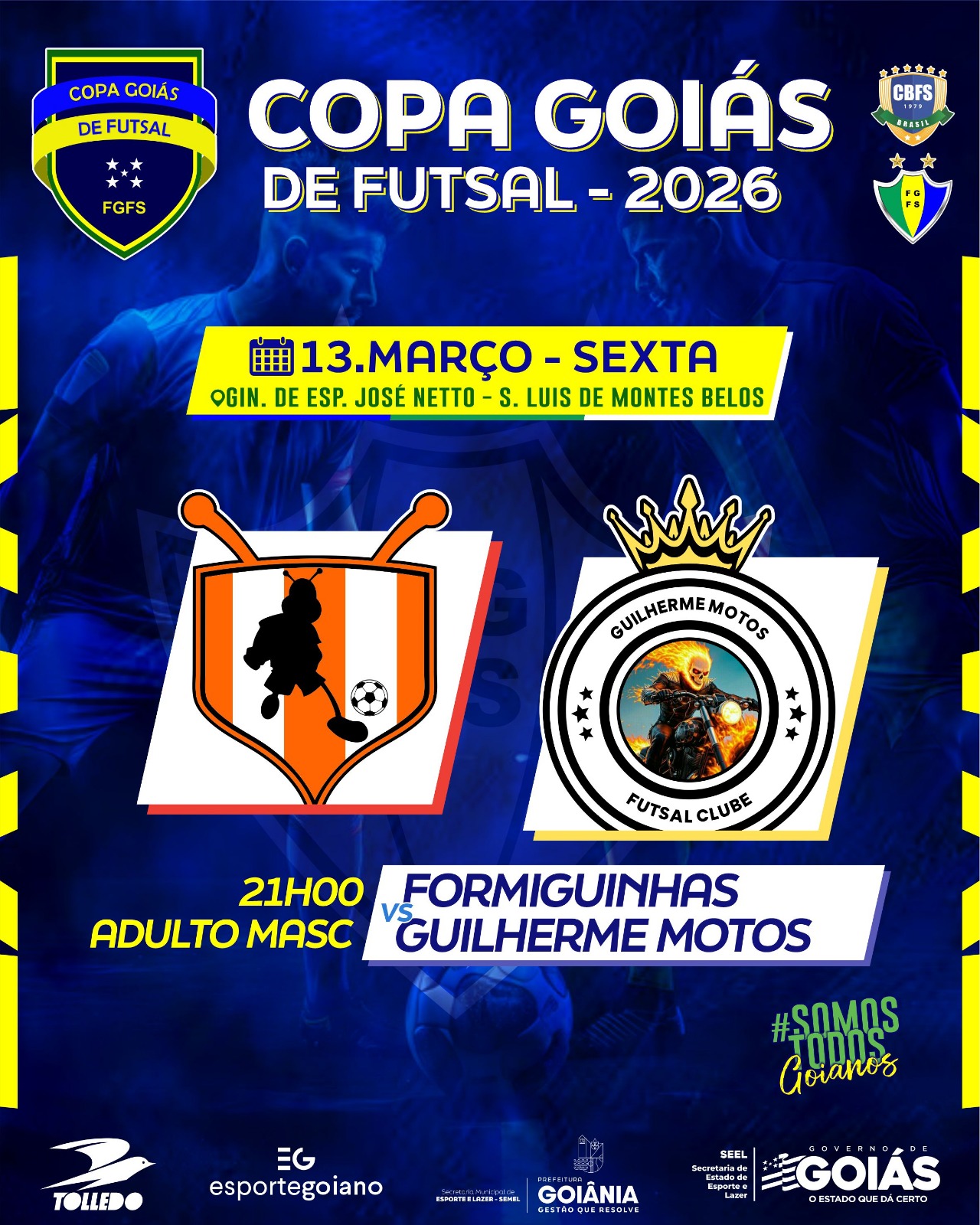 A Copa Goiás de Futsal volta a movimentar as quadras goianas neste final de semana (13, 14 e 15). Pelo adulto masculino, a segunda rodada se inicia nesta sexta (13), com dois jogos. Às 21h, no Ginásio José Netto, em São Luiz de Montes Belos, o Formiguinhas recebe o Guilherme Motos.