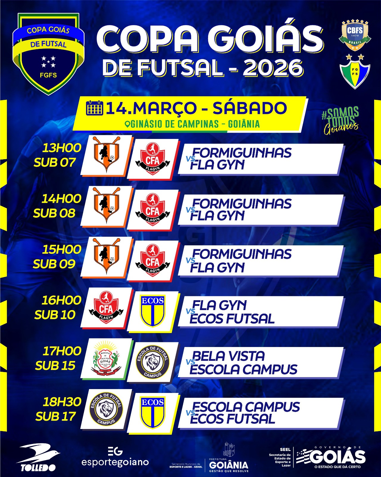 Confira todos os jogos de mais uma rodada da Copa Goiás de Futsal: