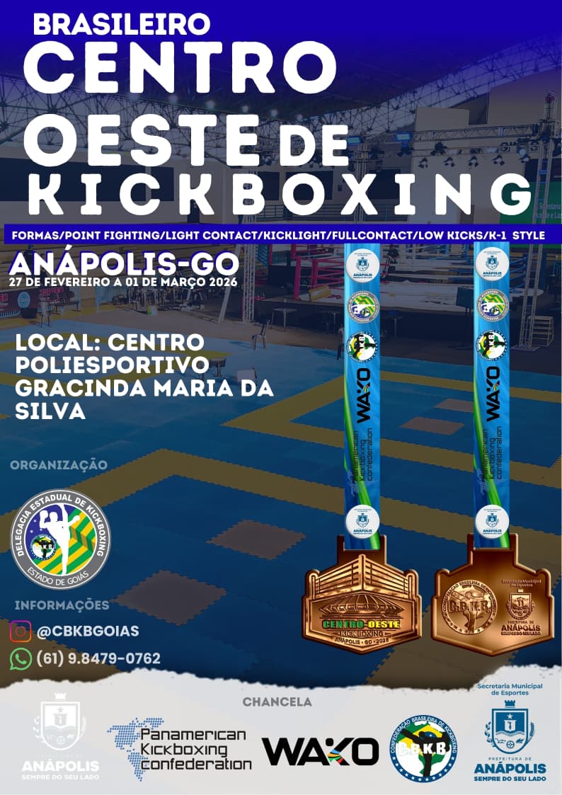 Anápolis será o centro das atenções do kickboxing nacional entre os dias 27 de fevereiro e 1º de março, ao sediar o Campeonato Brasileiro Centro-Oeste de Kickboxing, homologado pela Confederação Brasileira de Kickboxing em parceria com a WAKO. O evento acontece no Centro Poliesportivo Gracinda Maria e promete reunir atletas de alto nível de toda a região.