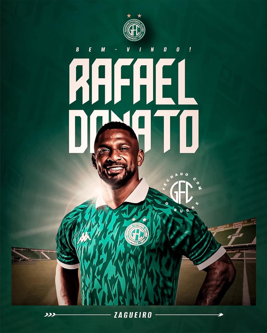 O Guarani anunciou, na segunda-feira (24), a contratação do zagueiro Rafael Donato, de 36 anos. O defensor chega ao alviverde da cidade de Campinas, em São Paulo, para a temporada de 2026, com vínculo de um ano. Durante a carreira, ele defendeu o Vila Nova por cerca de quatro temporadas.