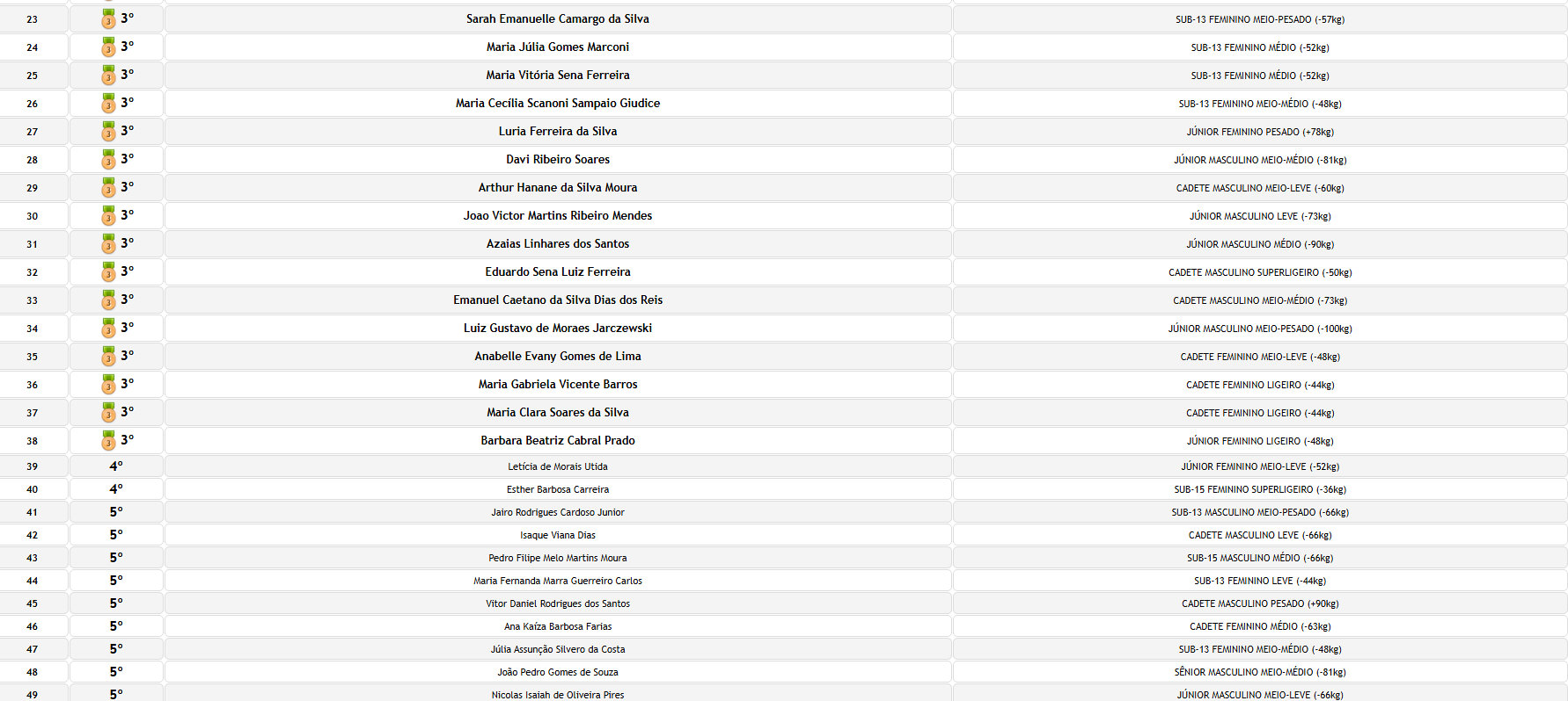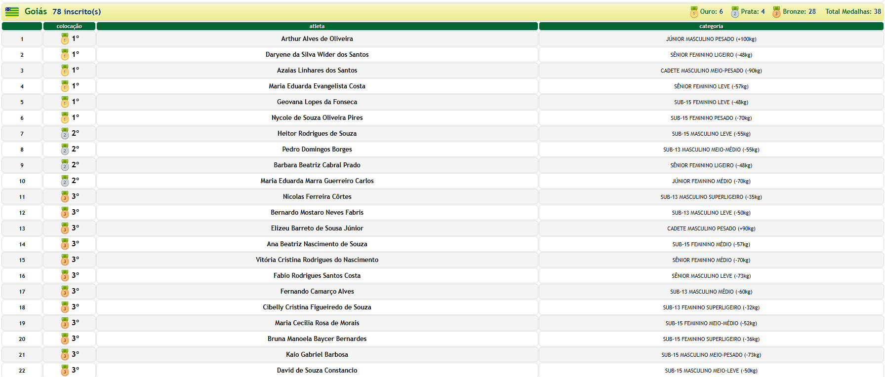 RESULTADOS OFICIAIS dos atletas de Goiás até 7° lugar – CBJ