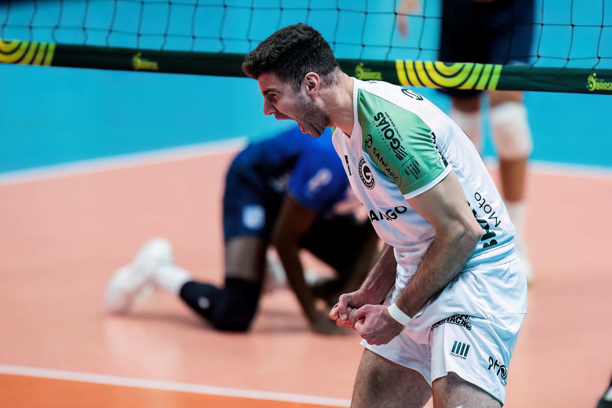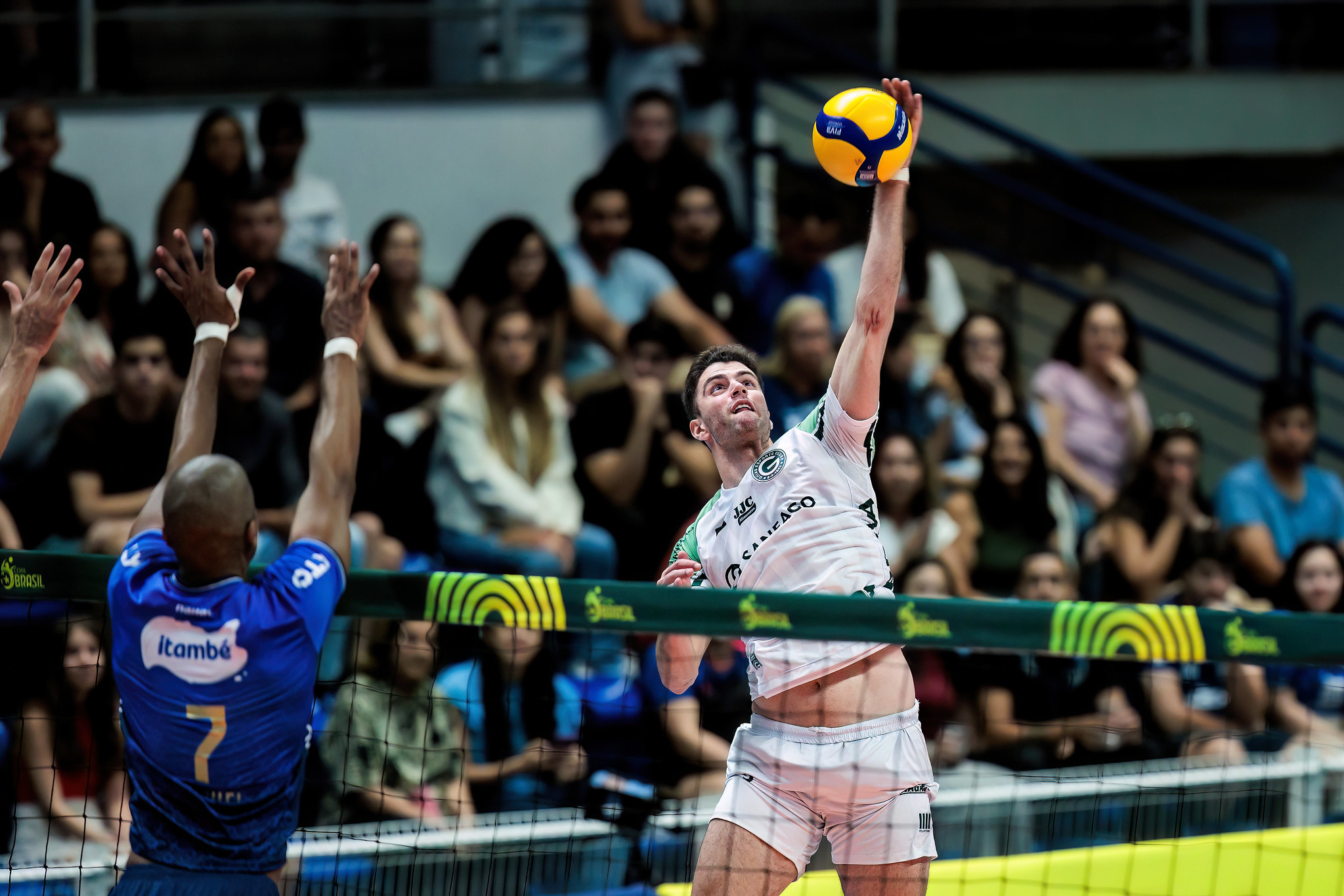 Em jogo emocionante e cheio de reviravoltas, o Esmeraldino venceu a equipe mineira por 3 sets a 2, em partida que teve 3 horas e 2 minutos de duração. As parciais foram 25-23, 24-26, 25-19, 17-25 e 15-13. O oposto Saliba foi o nome do jogo, com 28 pontos.