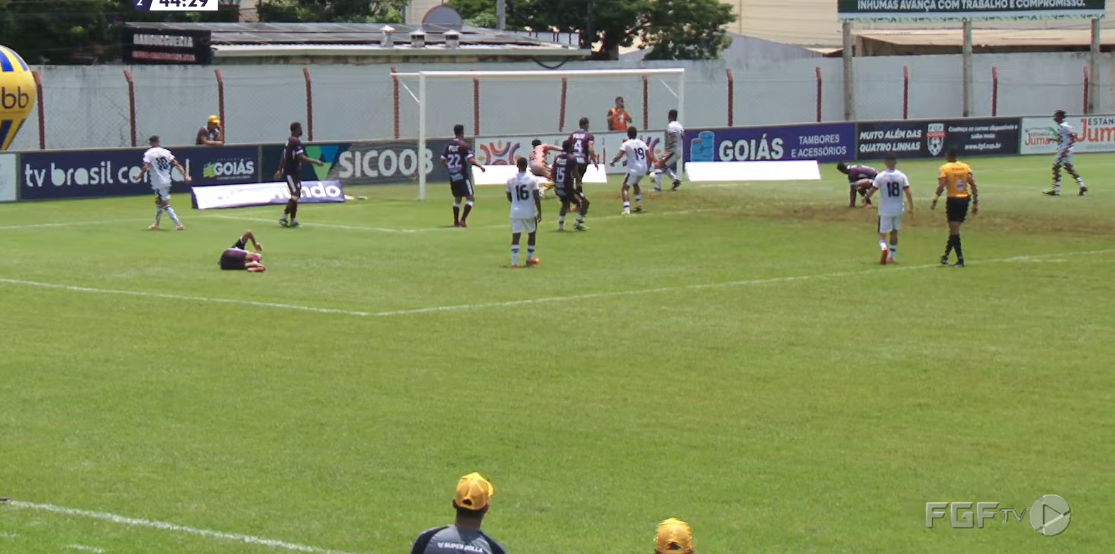 Já nos acréscimos, aos 48 minutos, Willian Goiano – que tinha marcado o primeiro gol – errou domínio, perdeu para Flávio na corrida e cometeu falta. Também levou cartão vermelho, deixando o time da casa com dois jogadores a menos antes do intervalo.