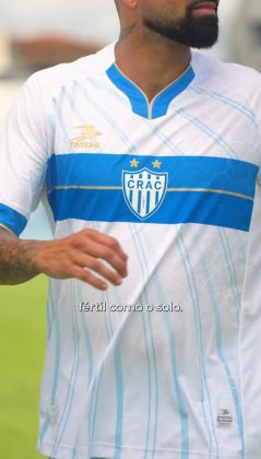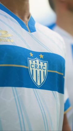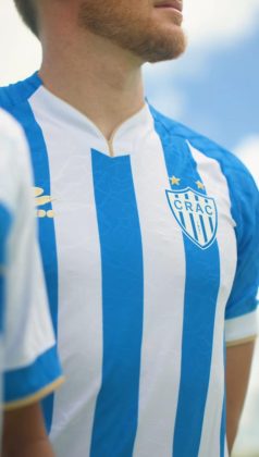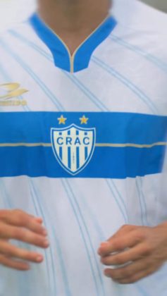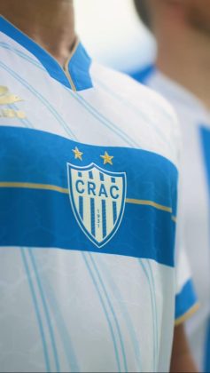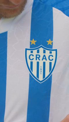 O Crac apresentou os seus uniformes para a temporada 2026 neste domingo (21). Os novos mantos do Leão do Sul são assinados pela Tolledo Sports e traz como grande novidade, o novo escudo do clube. A camisa número um, ganha uma marca d’água em toda a parte frontal e recebe três listras listras azuis e quatro brancas.