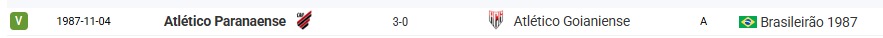 O Furacão marcou 38 gols enquanto que os goianos apenas 21, a vitória mais elástica do confronto é do time paranaense. Em 2022, na 18° rodada da Série A, venceu por 4×1. Ocorreram ainda três placares de 3×0, dois do CAP e um do ACG.