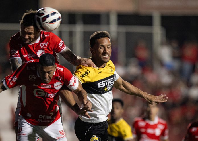 O Vila Nova empatou em 1×1 com o Criciúma, nesta noite de quinta-feira (2), no OBA. A partida foi válida pela 30° rodada da Série B. O Tigrão saiu na frente do placar no começo do primeiro tempo com um golaço de Júnior Todinho, num chute colocado no ângulo. Teve boas chances de ampliar com Gabriel Poveda e Guilherme Parede, mas não conseguiu. No começo do segundo tempo, o Criciúma empatou com Diego Gonçalves.
